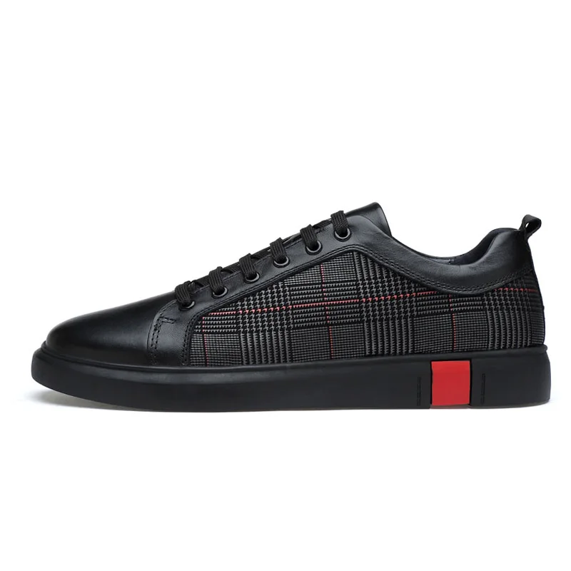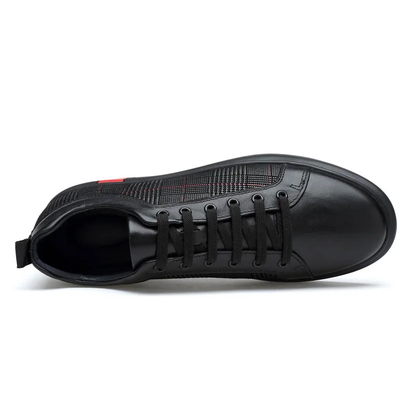 Autumn Winter Men Genuine Leather Solid Black Casual Shoes Sneakers Chaussure Homme Cuir High Quality Brand Flat Shoe Big Size