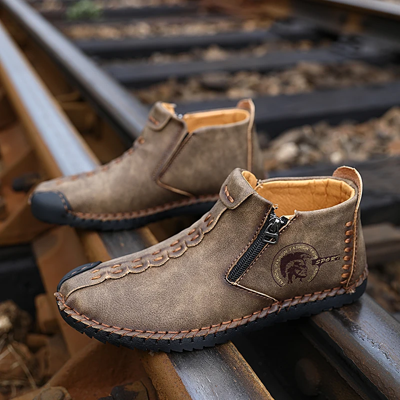 Plus Size Men Winter Boots Suede Leather Boots Men Snow Boots Waterproof Winter Shoes Leather Men Ankle Boots Fur Men Shoes