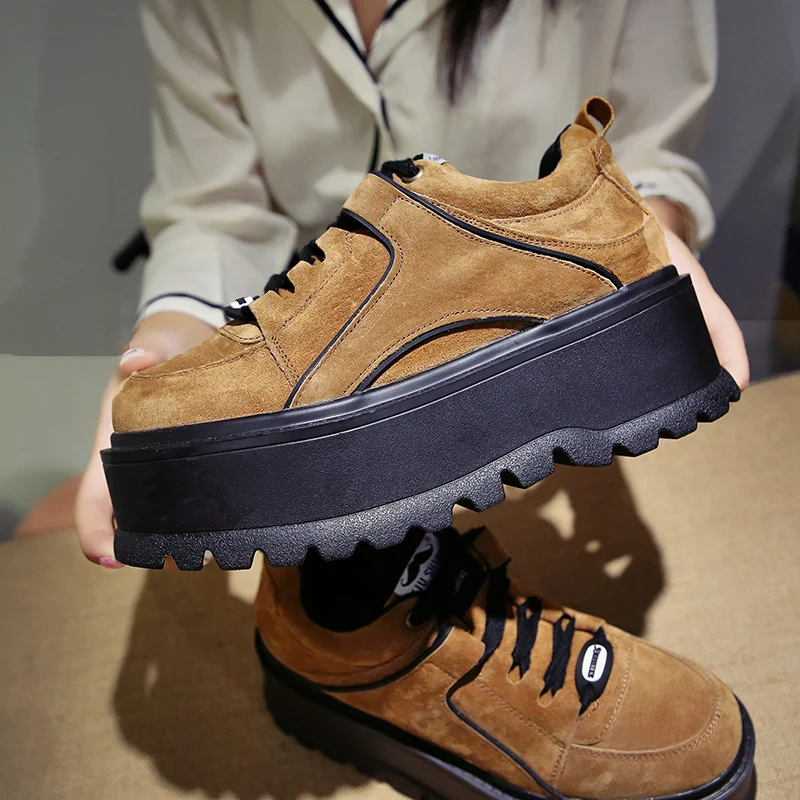 Aphixta Women Platform Ankle Boots Shoes Women Boots High Quality Height Increasing Ladies Shoes Cow Suede Lace-Up Botas Mujer