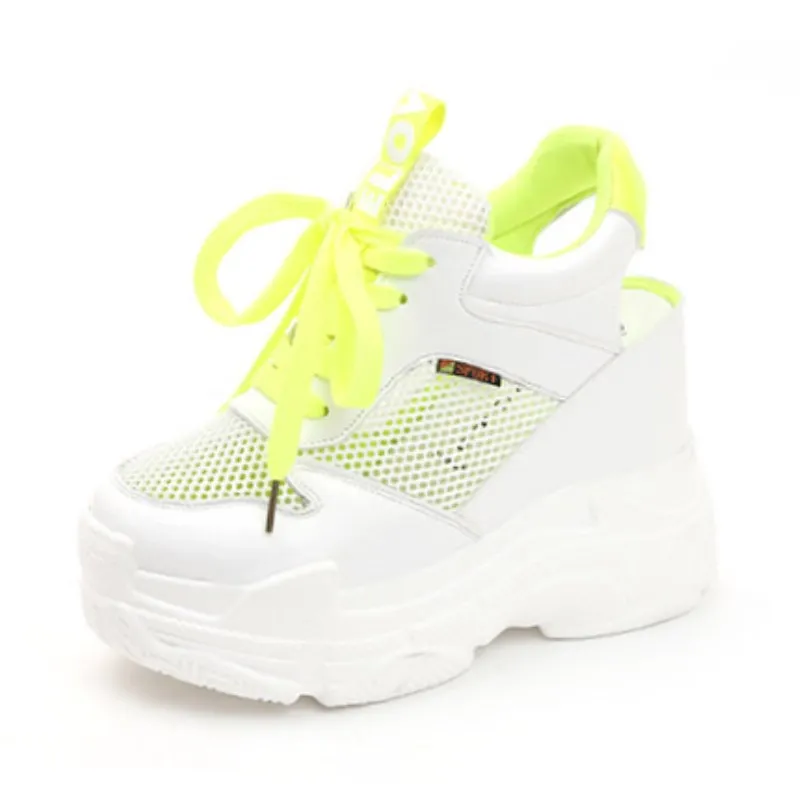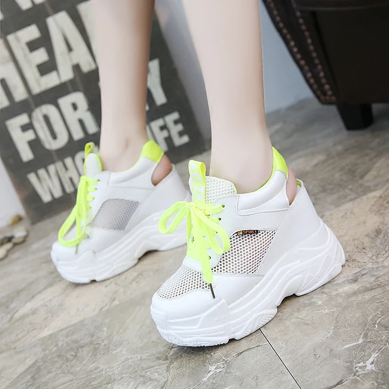 2019 Summer Women Sneakers Mesh High Platform Trainers White Shoes 9cm Heels Wedges Sandals Breathable Woman Casual Summer Shoes