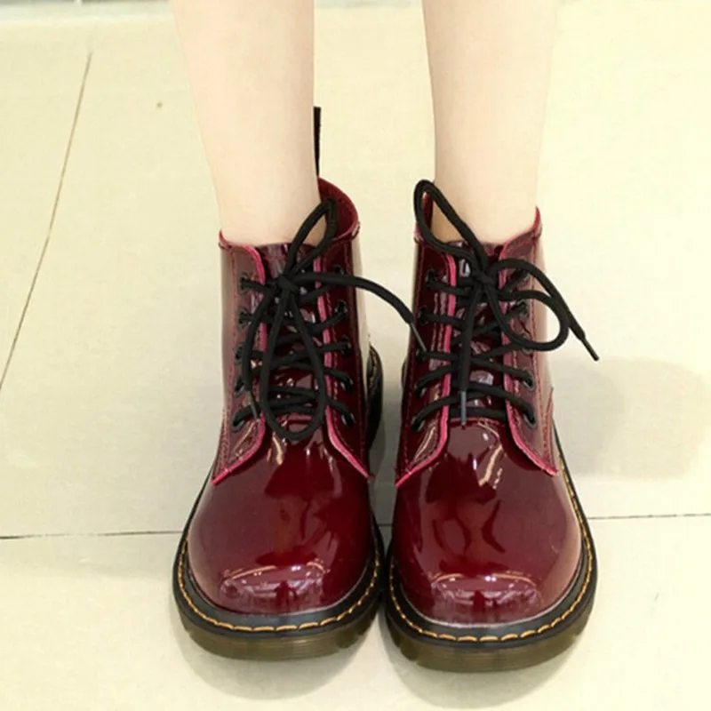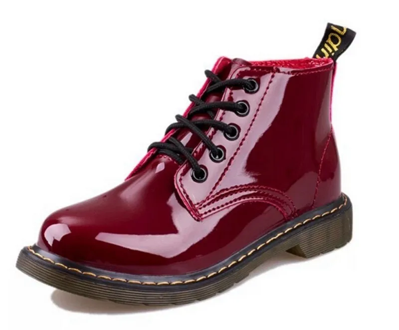 Limited Offer Cootelili Plus Size Botas Patent Leather Boots Women School Style Lace Up Shoes For Girls Red Black with FREE Shipping Worldwide!