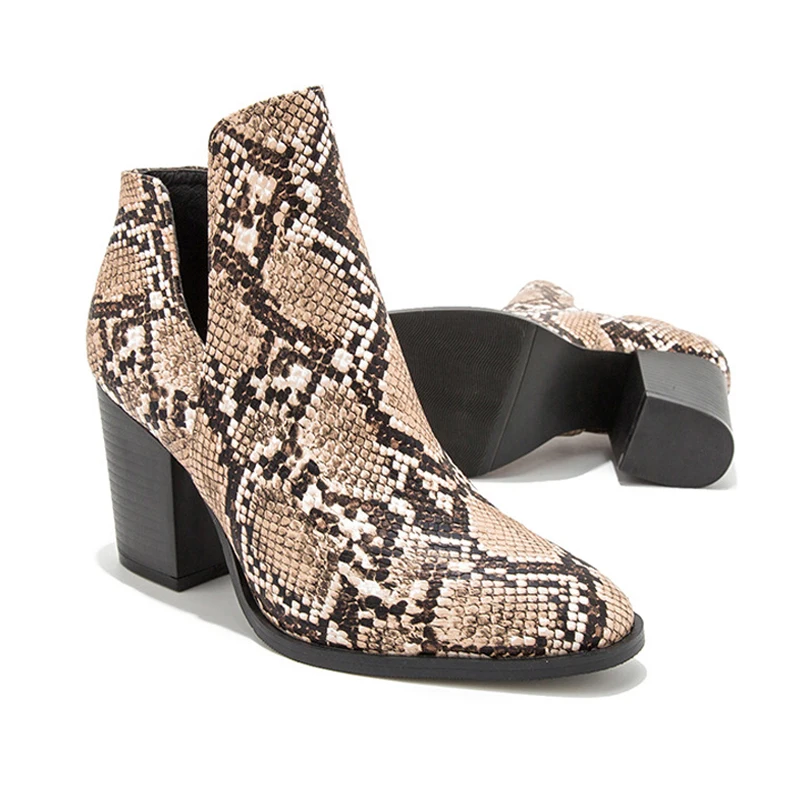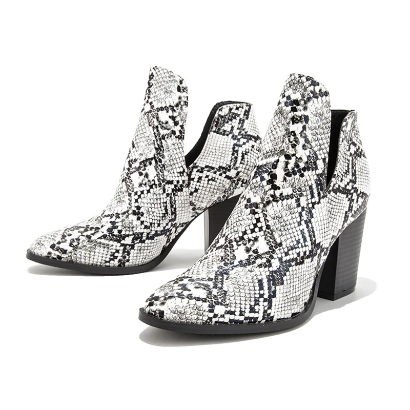 Cxjywmjl Western Cowboy Boots Motorcycle Women Snake Pattern Pu Leather High Heels Booties No Lace Cowgirl Boots Ankle Boot 6857