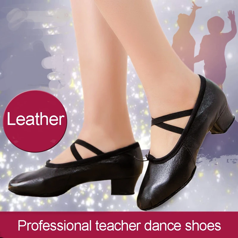 Ballet Shoes With Heels Adult Dance Shoes Women Girls New Leather Latin Dance Shoes Practice Teacher Teaching