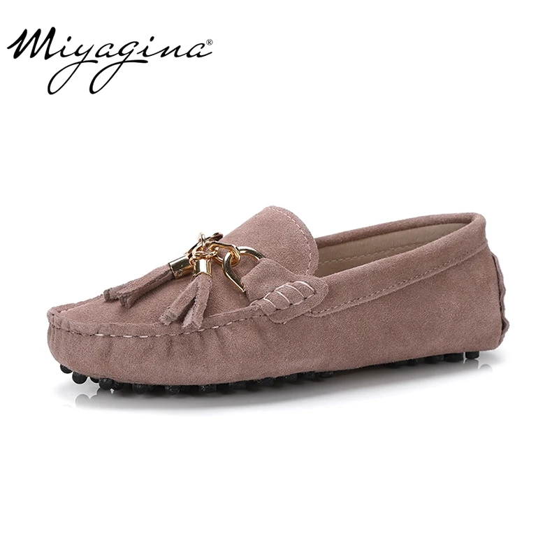 Miyagina 100% Genuine Leather Women Shoes 2020 New Women Flats Spring Flat Moccasins Woman Casual Shoes 17 Colors Size 34-41