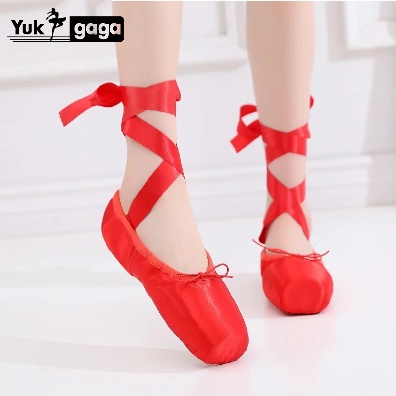 Ballet Dance Silk Dancing Shoes Pointe With Ribbon For Children Kids Girls Women Soft Flats Shoes Comfortable Fitness Slippers