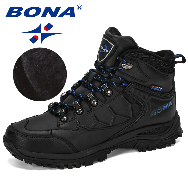 Bona 2019 New Designers Action Leather Shoes Climbing & Fishing Shoes Men Outdoor Shoes Man High Top Winter Boots Plush Comfy