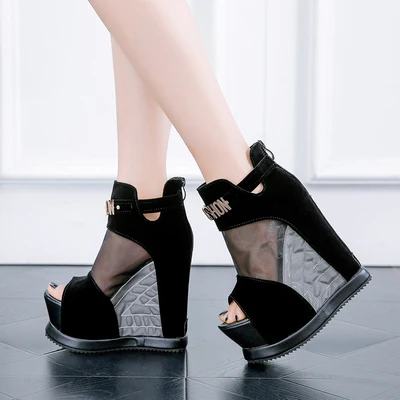 Cheap Offer Flock Ankl Boots Shoes Women Summer Hollow High Slope With The Fish Mouth Single Shoes Thi with Free Worldwide Shipping!