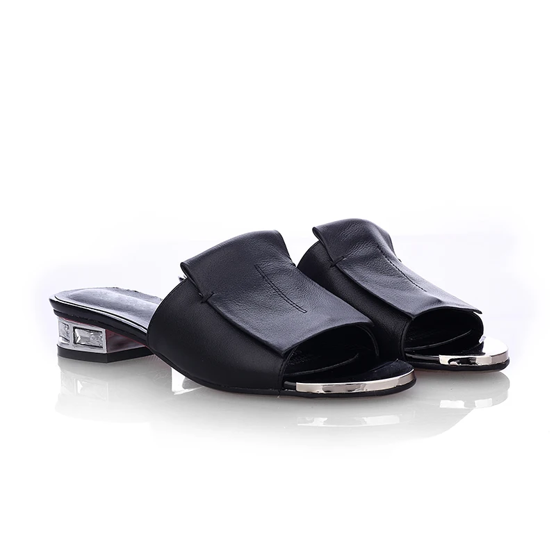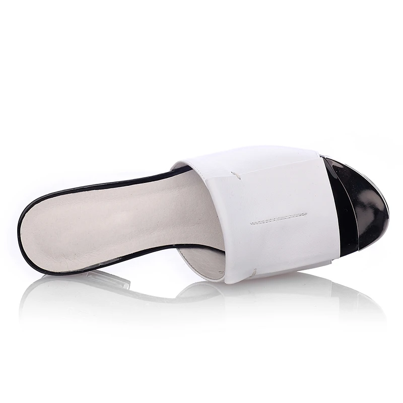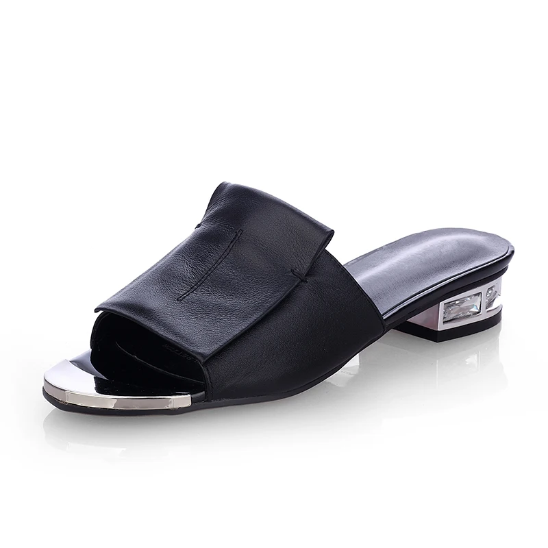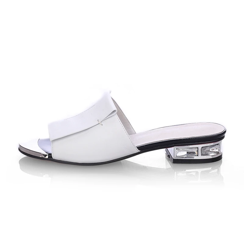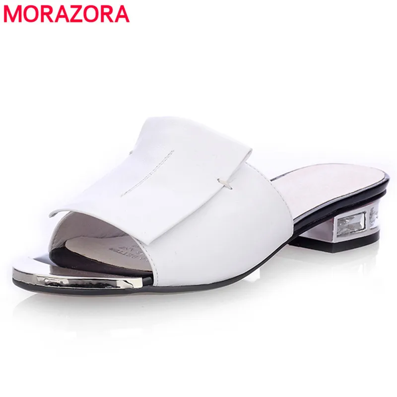 Morazora 2020 New Genuine Leather Women Slippers Rhinestone Square High Heels Crystal Summer Shoes Flip Flops Ladies Shoes