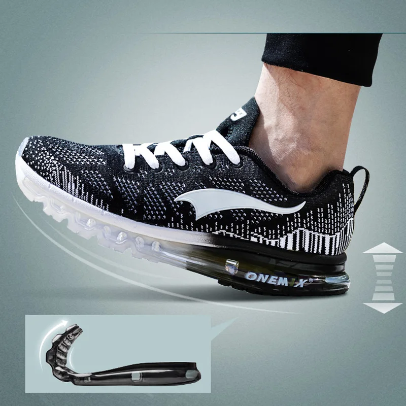 Onemix 2019 Running Shoes For Men Soft Air Cushion Breathable Knitted Vamp Male Outdoor Athletic Jogging Shoes Walking Sneakers