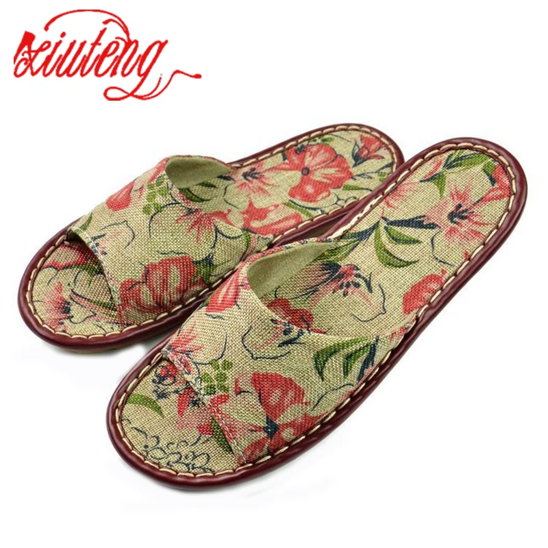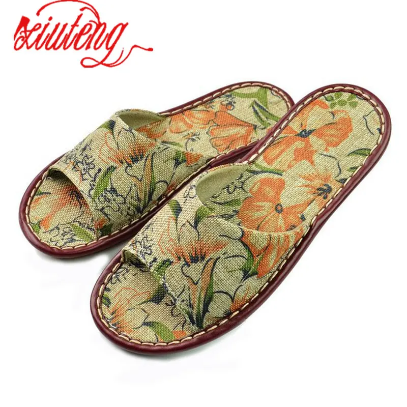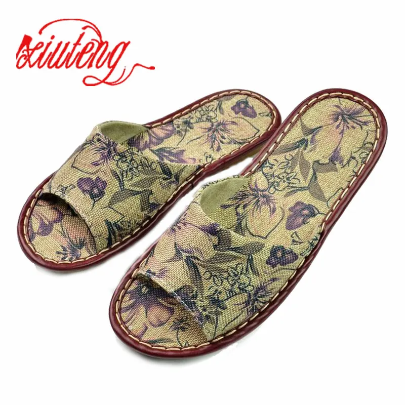 Xiuteng 2018 Summer/Autumn Genuine Cowhide Leather Women House Slippers Flat Flax Shoes Indoor Feminina Sandals Slippe 3 Color