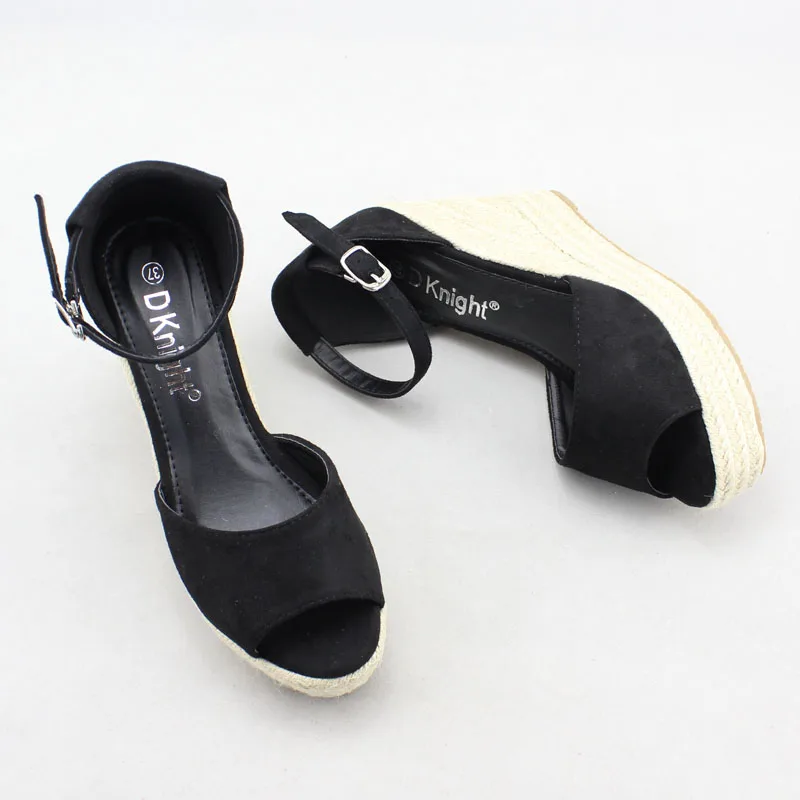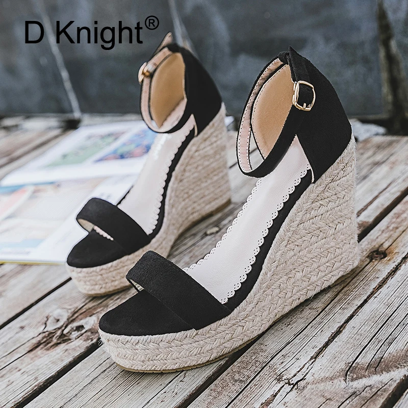Best Offer Size Wedges Women Sandals Open Toe White Pu Leather High Heel Pumps Black Flock Ankle Str with Free Shipping Worldwide!
